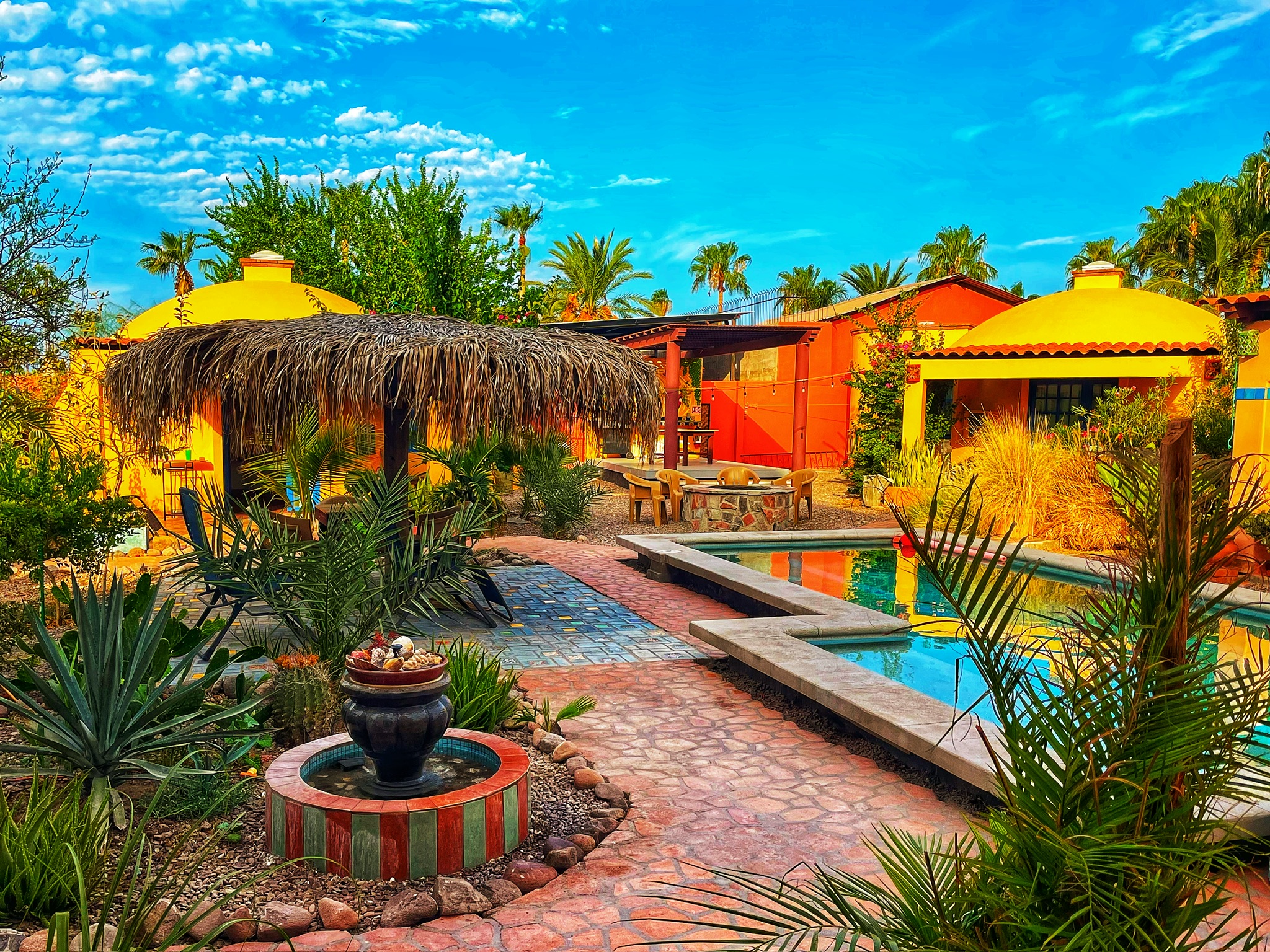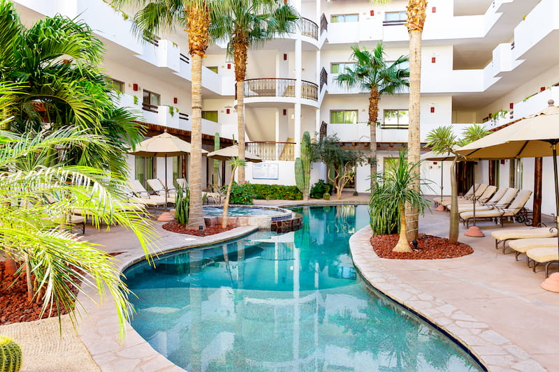 Home-like accommodations with kitchens, living areas, a swimming pool, and tranquil settings, offering a perfect blend of privacy and comfort for families or groups visiting Loreto. Pet friendly.